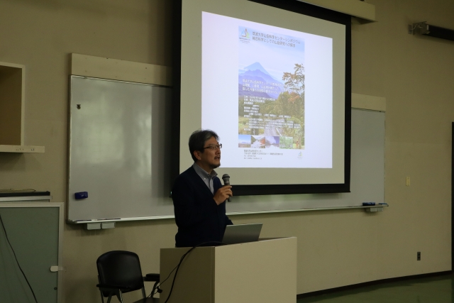 冒頭に、呉羽正昭 筑波大学山岳科学センター長による開会の挨拶があり、次に清野達之 筑波大学山岳科学センター八ヶ岳演習林長から本シンポジウムの趣旨説明が行われました。