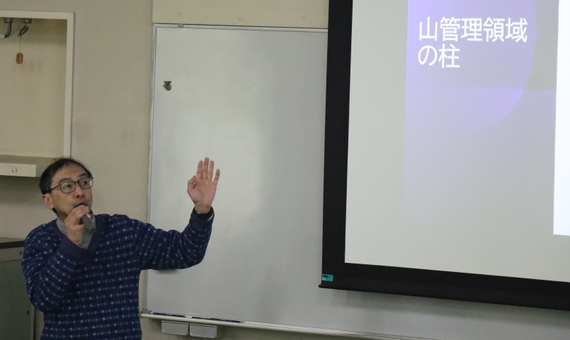 続いて各領域長(山理解・出川洋介 筑波大学山岳科学センター菅平高原実験所長; 山管理・清野達之 筑波大学山岳科学センター八ヶ岳演習林長; 山活用・興梠克之 筑波大学山岳科学センター准教授)からそれぞれの領域の概要や目的、ゴールなどを紹介しました。