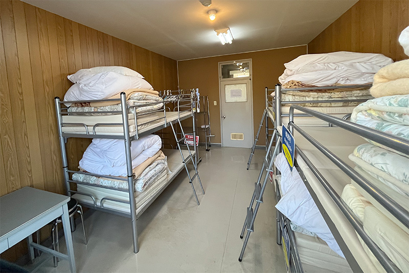 洋室:2段式ベッド3台、机1台、椅子、FF式ストーブ、換気扇、洋服掛