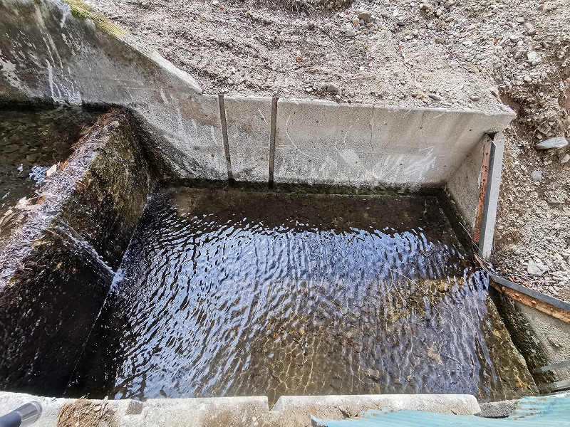 少し上の総合気象脇にある小さな量水堰堤では、まだ氷がありました。