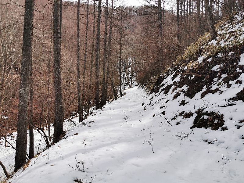 1林班分岐点までは撮影できましたが、鞍骨登り口まで行く途中の林道の積雪がまだ多く、周回路の全線を回れるのはまだ先になりそうです…
