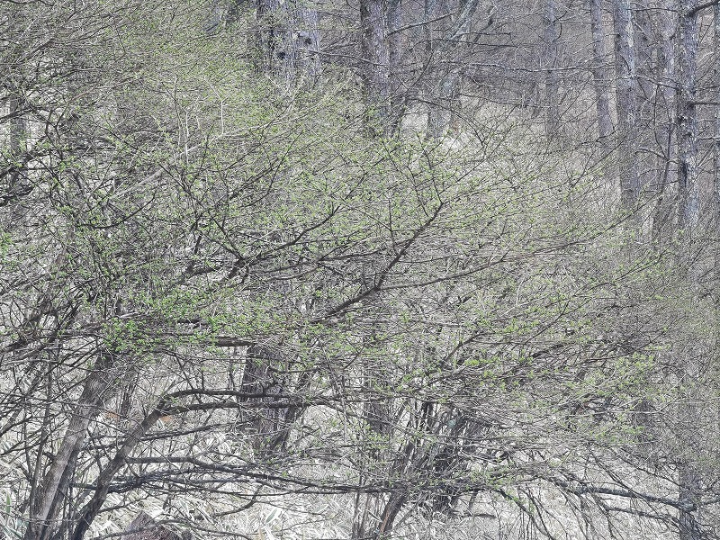 今回はあいにくの雨模様でしたが、冬枯れの林内に薄っすらと新緑の彩りが着き始めた感じです。