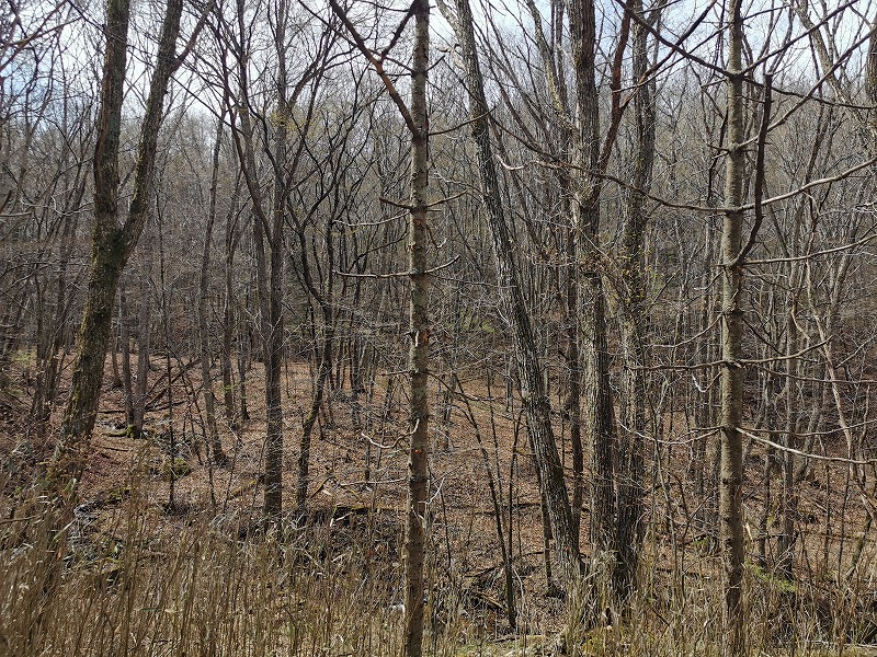 広葉樹林はまだ冬枯れに見えますが…
