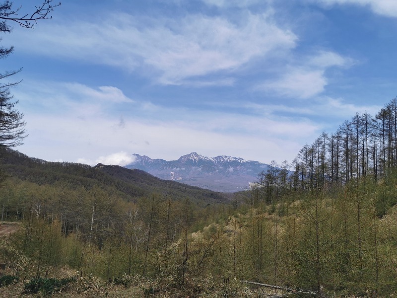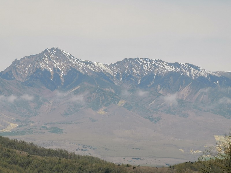 カラマツの開葉も進み次第に冬枯れた山々が新緑に染まっている八ヶ岳です。