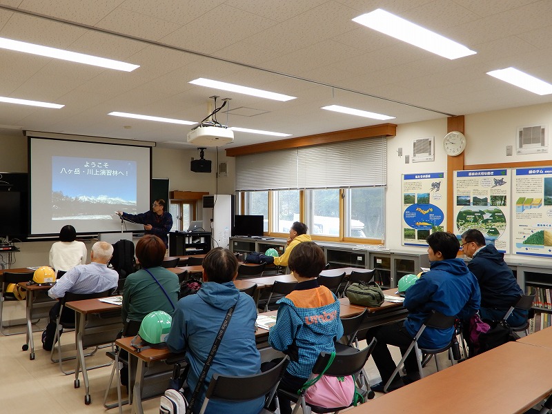 受講生の方は10時に恵みの森管理棟に集合でしたが、皆さんが集合時間前に集まってくださり少し前倒しで開講です。