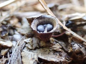 こちらはチャダイゴケ。わずか1センチ足らずのちいさなちいさなキノコです。中の丸いものは胞子です。