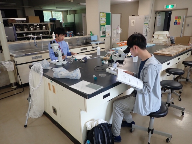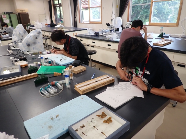 2.昆虫を目(order)レベルで認識できるようになることを目標に,草原,森林,土壌,河川において昆虫を採集し,標本の作製方法,同定方法を学ぶ。