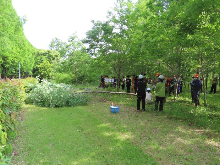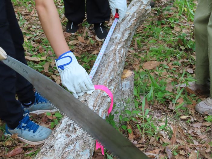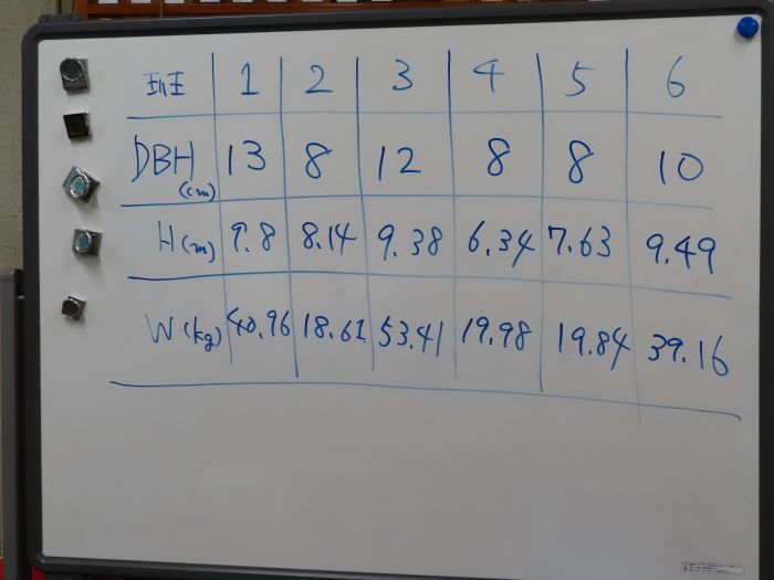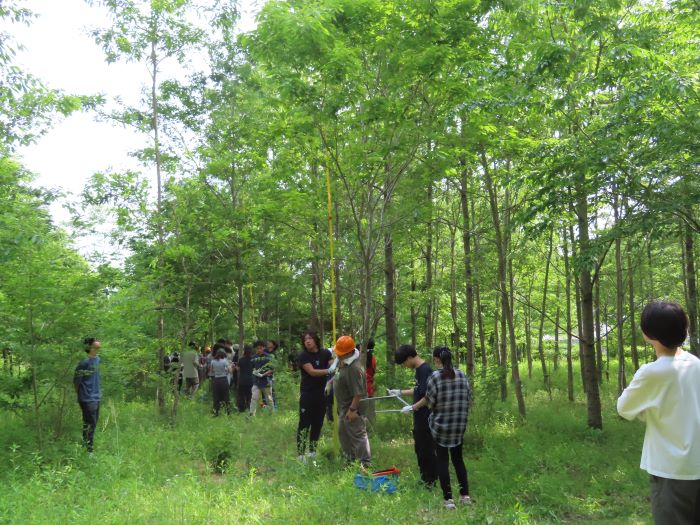 農林生物学実験~野外調査法~を実施 2026.3.24 その他 筑波実験林 5月15日に筑波実験林で農林生物学実験を行いました。生物資源学類の3年生の授業です。 実習用地に移動し、伐採予定の樹木の樹高と胸高直径を計測します。 樹木の計測が終わったら、班ごとに木を切り倒していきます。 倒した木から枝を切り離し 決まった長さに切っていきます。 班ごとに重さを量ります。 実習室に戻り、各班のデータを記入しました。どのような事がわかったのでしょうか。 皆さん、お疲れさまでした。 前の記事 一覧 次の記事