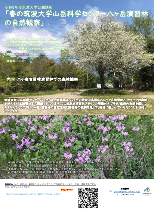 令和8年度筑波大学公開講座「春の筑波大学山岳科学センター八ヶ岳演習林の自然観察」開催のお知らせ